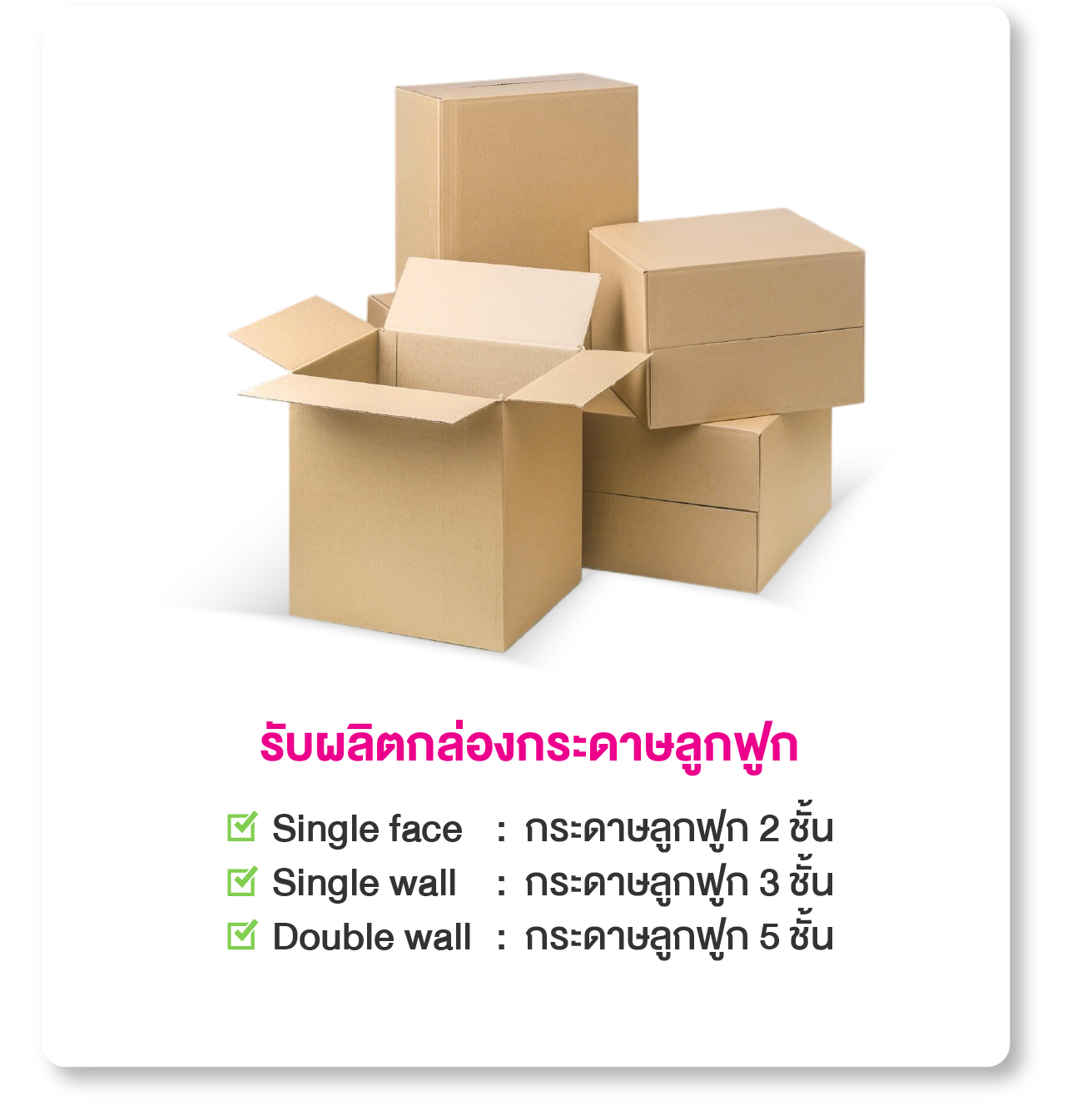 เรารับออกแบบบรรจุภัณฑ์โดยมุ่งเน้นคุณภาพ รับผลิตกล่องกระดาษและกล่องพลาสติกตามที่ลูกค้าต้องการ “สั่งทำได้” พร้อมขึ้นตัวอย่างทดลองให้ดูได้ทันที